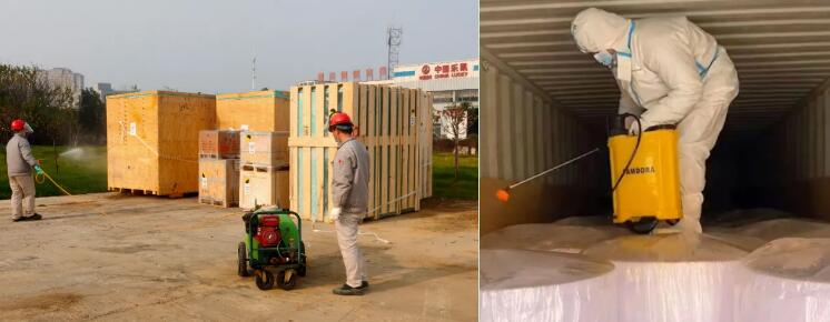中國樂凱集團(tuán)公共事業(yè)部嚴(yán)格落實(shí)防疫要求,進(jìn)口到貨采取“多重消毒”,即進(jìn)口集裝箱進(jìn)入卸料區(qū)后,由消毒人員對(duì)車輛和集裝箱進(jìn)行整體的外部消毒;打開集裝箱箱門后,消毒人員進(jìn)入集裝箱,對(duì)箱內(nèi)貨物進(jìn)行二次消毒 ,貨物卸車后消毒人員對(duì)貨物進(jìn)行全方位消毒。中高風(fēng)險(xiǎn)區(qū)到貨采取卸貨后集中全方位消毒。